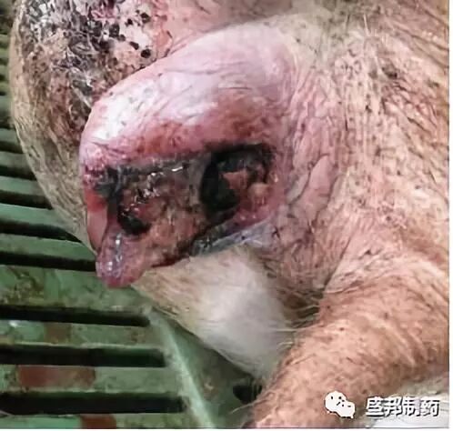 2、乳房炎:乳房炎是乳腺受到物理、化学、微生物等致病因子的作用发生的一种炎性变化,常发生于产后5天~30天内,尤其夏季母猪最易发生。其危害不仅是患病母猪本身,还引起仔猪发病。